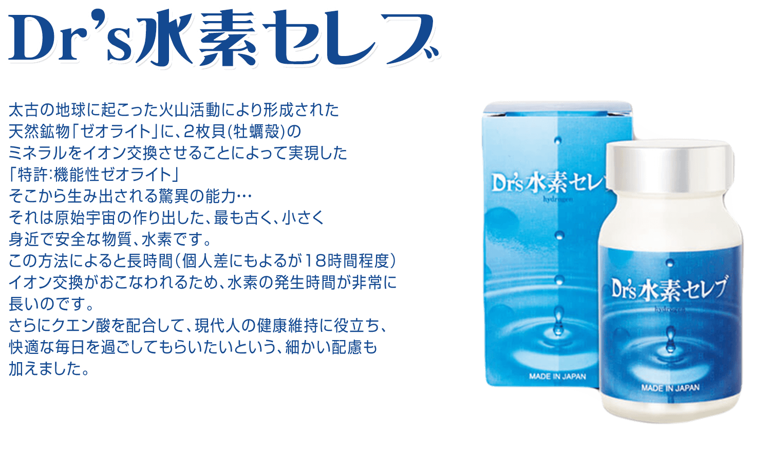 何かお客様の健康維持に役立てられる、薬以外の食品等を探していましたところ、「Dr's水素セレブ」にたどり着きました。