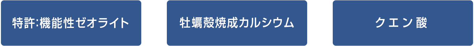 この極めて純度の高いゼオライトと、牡蠣殻の焼成カルシウムを配合して開発したのが、「特許:機能性ゼオライト」です。
